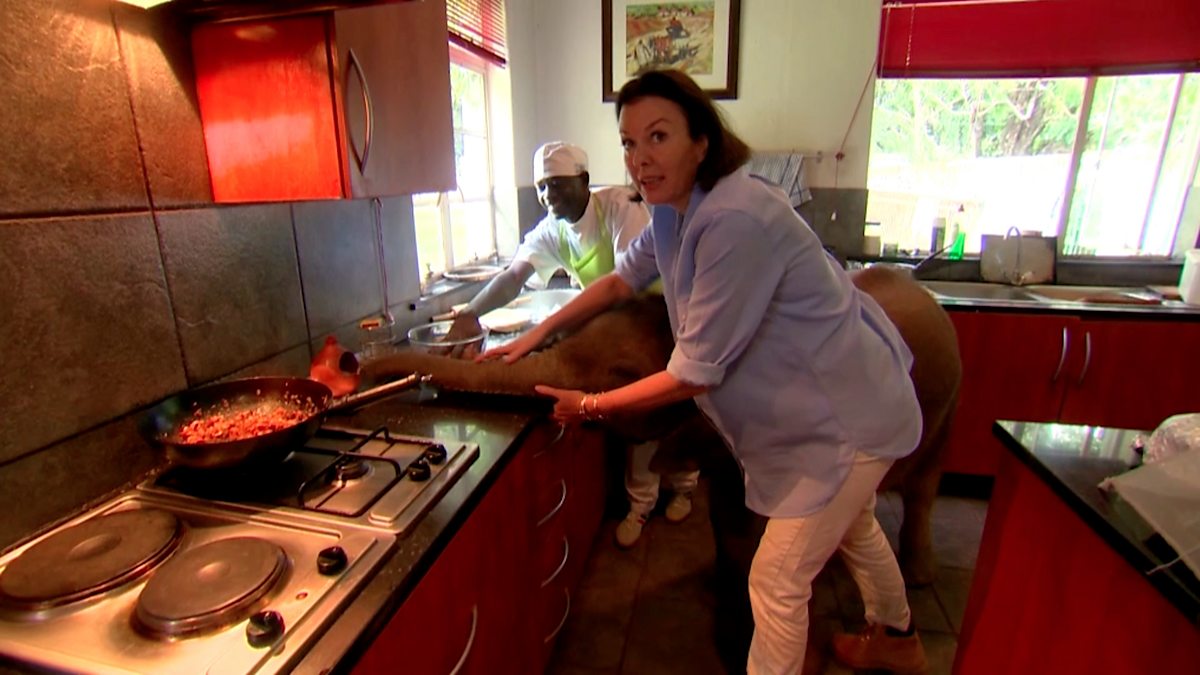 Moyo the orphaned baby elephant makes himself at home in carer Roxy’s house.