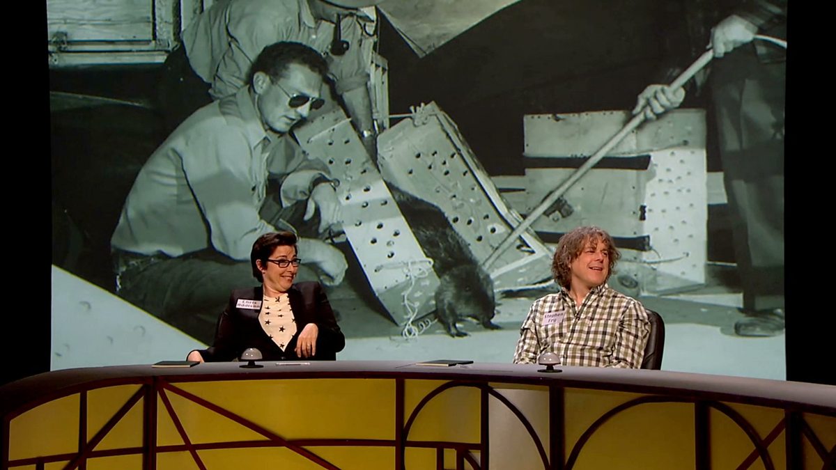 Stephen Fry, Alan Davies, Sue Perkins, Chris Addison and Sara Cox chat about repopulating parts of American with beavers by mule and by parachutes.