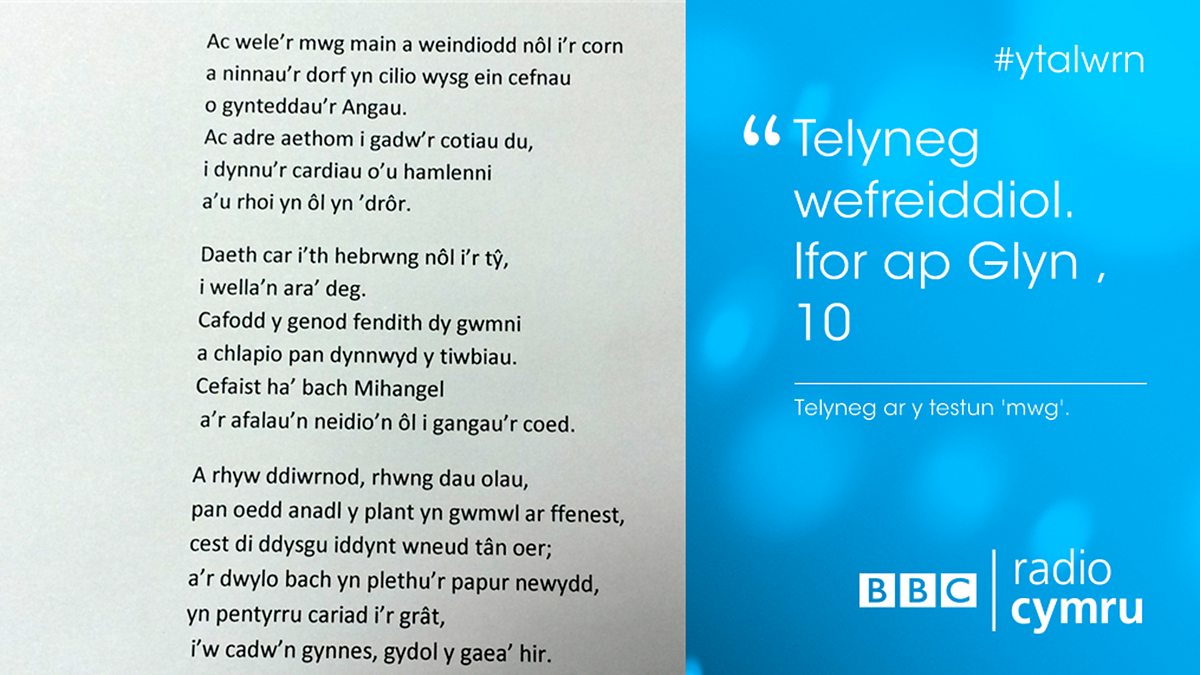 Telyneg Ifor ap Glyn o dîm Caernarfon ar y testun 'Mwg'. 10 marc