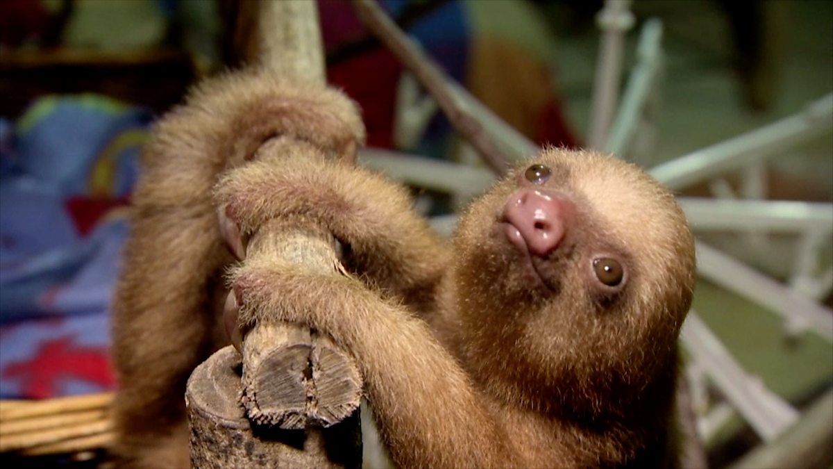 Patrick gets his hands dirty clearing up after sloths Elvis and Bruno when they take a pee.