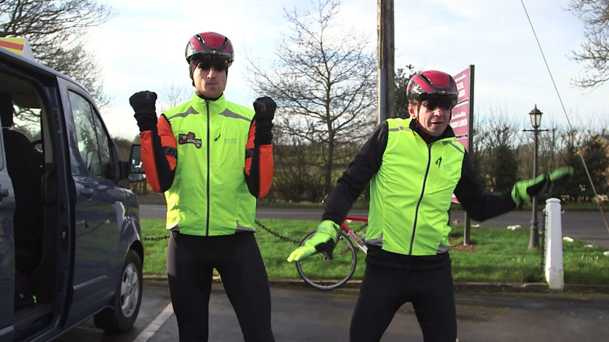 Greg takes a quick break from his cycling to do an inspirational dance... Go Greg!