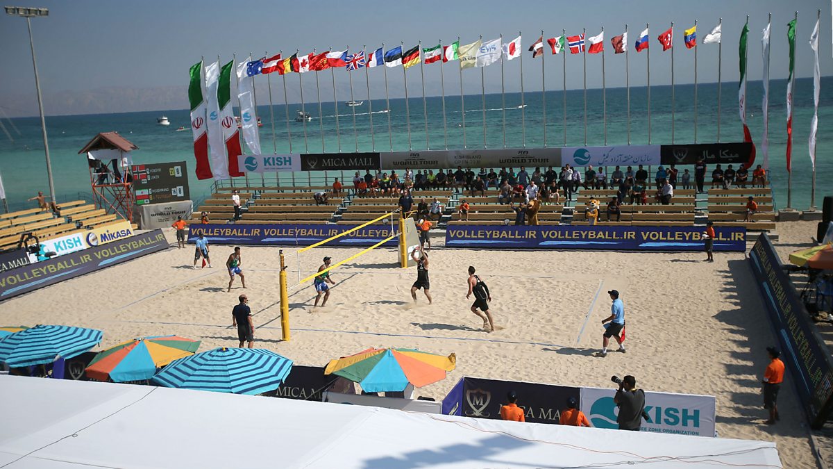 (Image: General view shows a volleyball match between Iran and Norway during Beach Volleyball World Tour on the Iranian Kish Island. Credit: HOSSEIN TAHAVORI/AFP/Getty Images)
