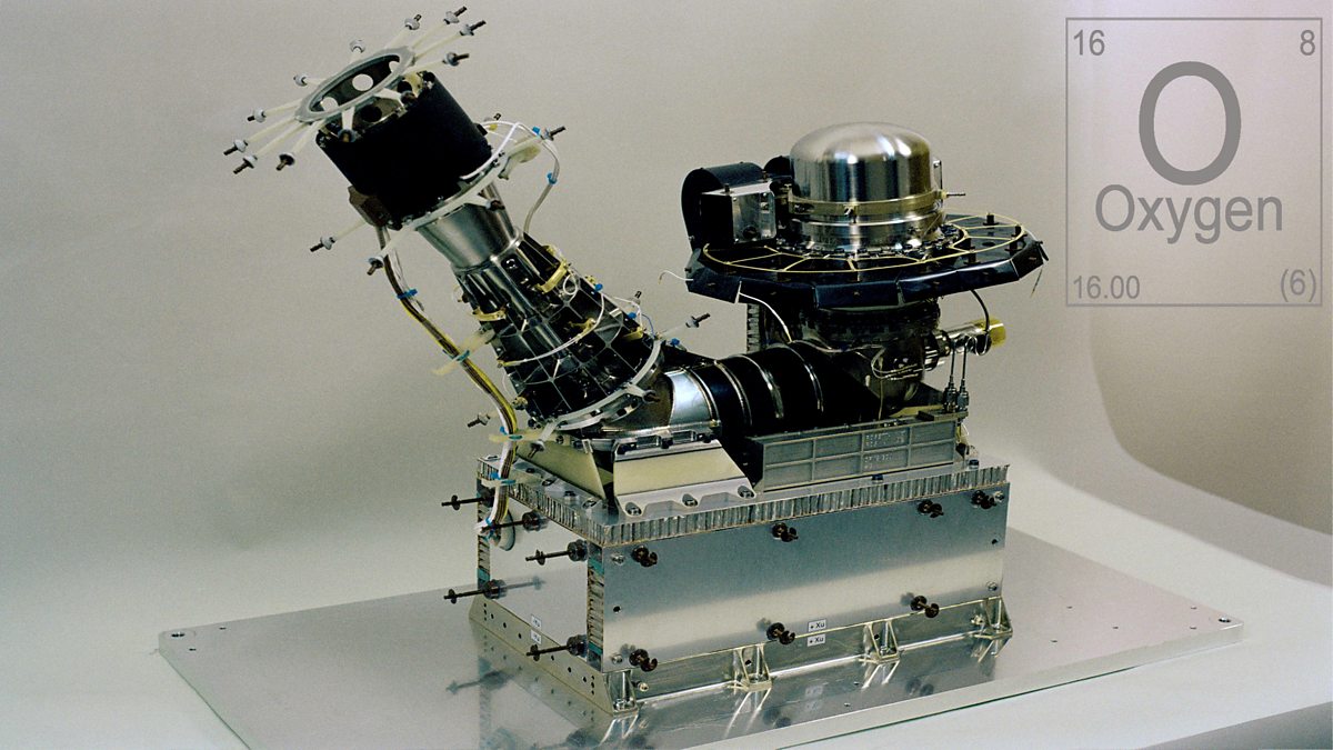 (Photo: The DFMS (the Double Focusing Mass Spectrometer on the Rosetta space orbiter, which is the instrument measuring the oxygen in space. Credit: University of Bern)