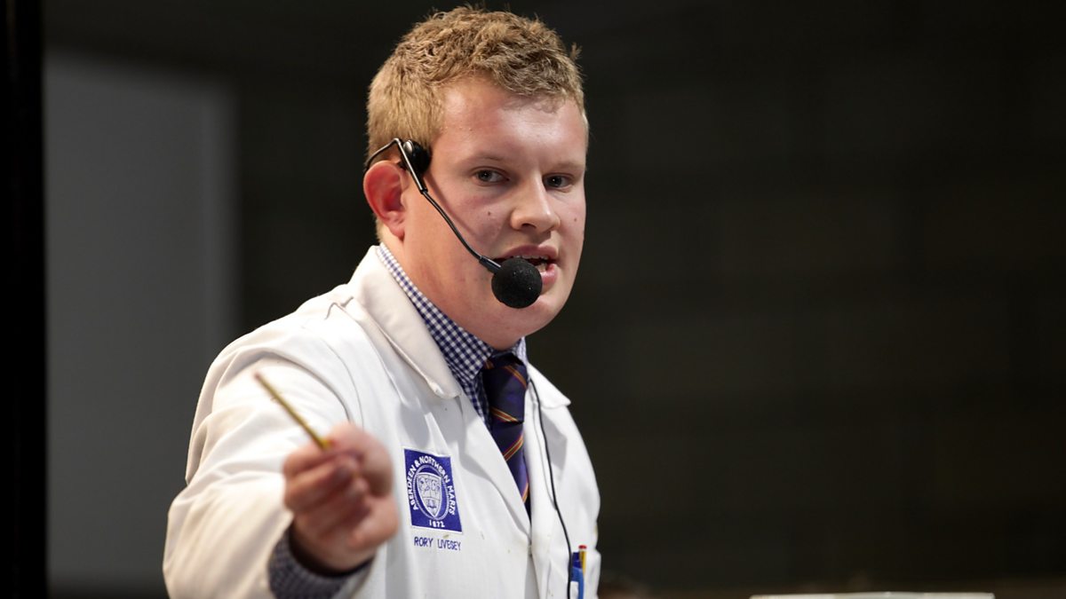 Trainee auctioneer Rory takes to the rostrum for a special sale giving young farmers the opportunity to buy and sell at the Mart. The enthusiastic youths bid in droves.