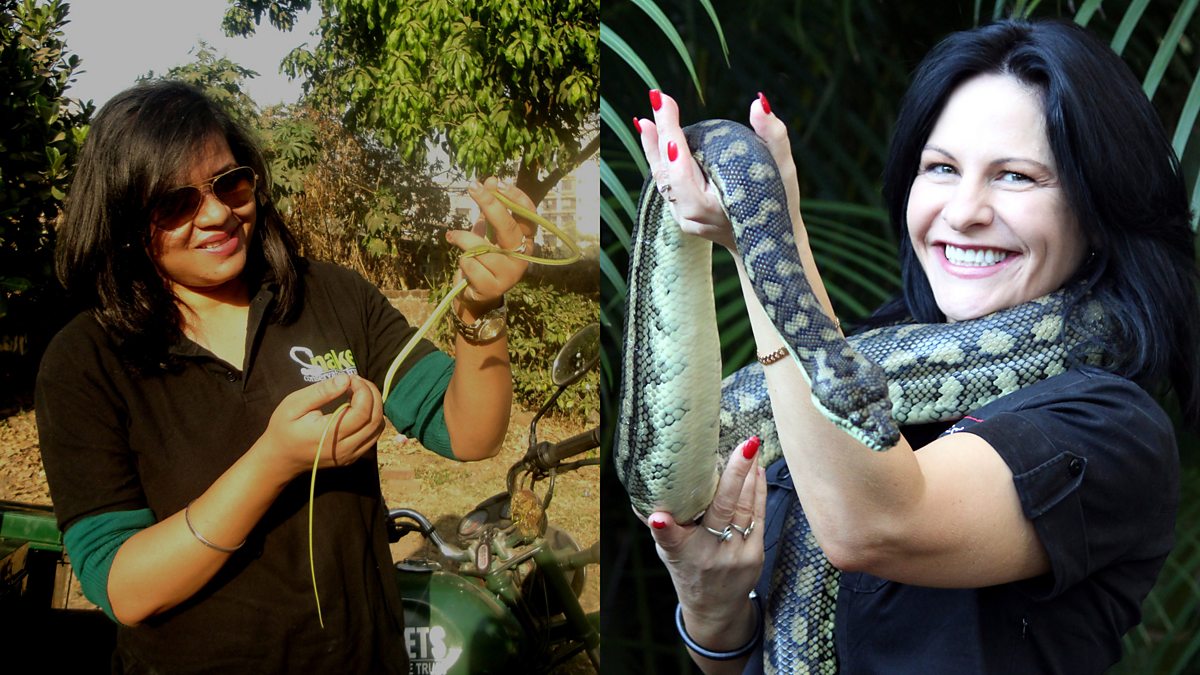 'I get literally goose bumps' - snake rescuers in India and Australia share their passion for handling the reptiles and describe people's shock at seeing a woman doing this job.