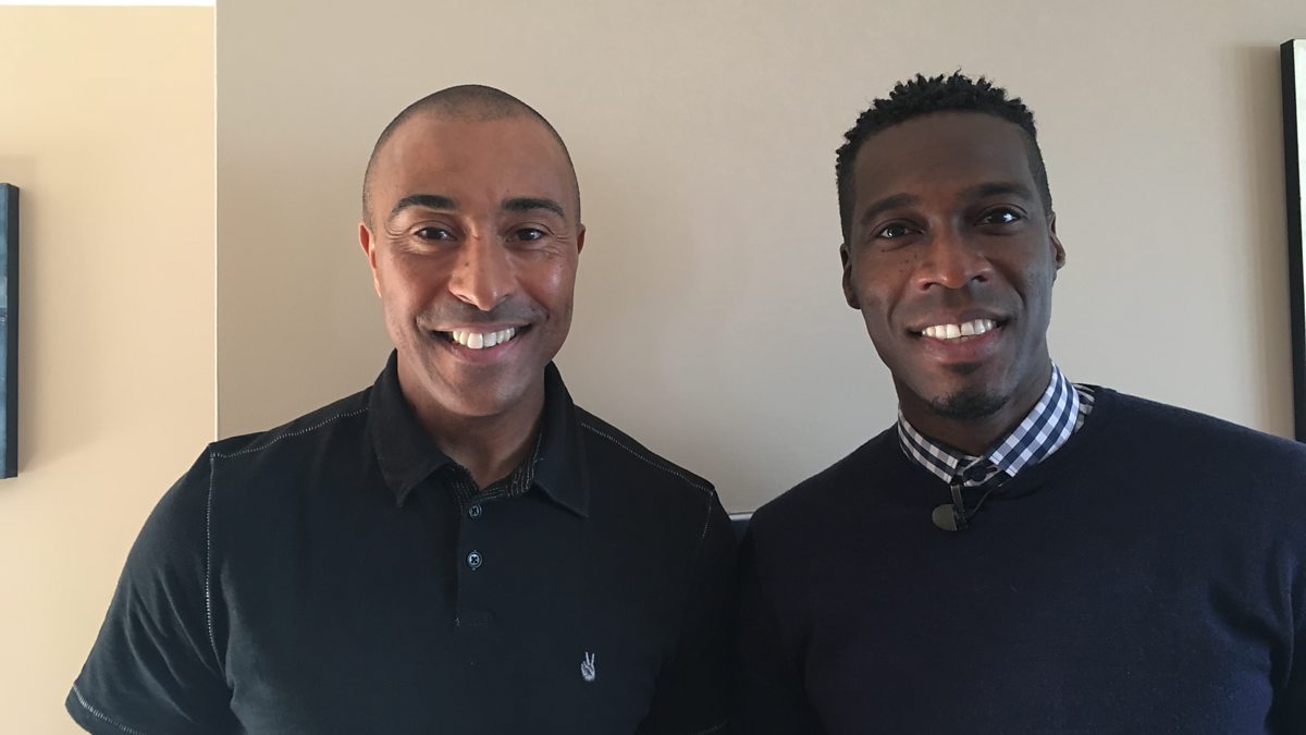 Christian Malcolm meets his former GB team-mate Colin Jackson
