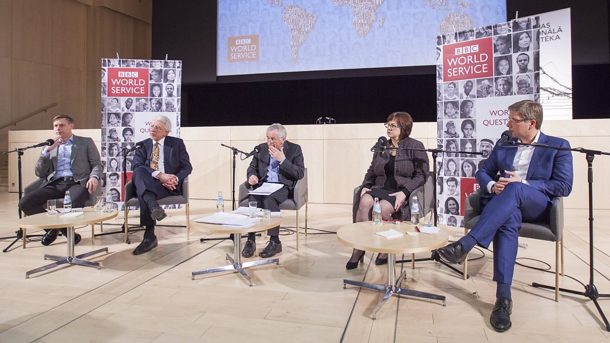 Following Russia's annexation of Crimea and its incursion into parts of eastern Ukraine, the panellists on World Questions consider whether a Russian invasion of Latvia might ever be on the cards. A member of the European Union, Latvia also has a border with Russia. You will hear, in order, Ojārs Ēriks Kalniņš, chair of the Foreign Affairs Committee in parliament; Baiba Rubesa, chair of the new Rail Baltica project; the mayor of Riga, Nils Ušakovs; and Magnus Christiansson, a Swedish security strategist specialising in NATO and the Baltic states.
