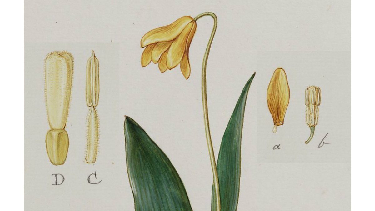 Oxford's Botanic Gardens plant 121 - Fritillaria sibthorpiana commemorates the University's third Sherardian Professor of Botany, John Sibthorp. Sibthorp explored the eastern Mediterranean in the late-1780s and early-1790s, employed the botanical artist Ferdinand Bauer and funded publication of the Flora Graeca (1806-1840). Presented by Dr Stephen Harris.