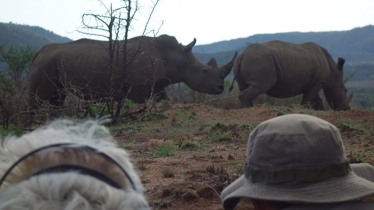 Adam Hart and producer Fi Roberts spy on white Rhino's play jousting