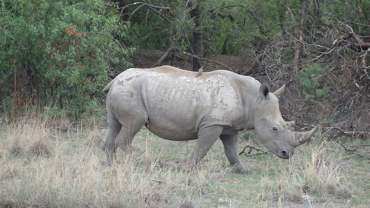 Group of young male Rhinos in Pilanesberg Park, South Africa.
