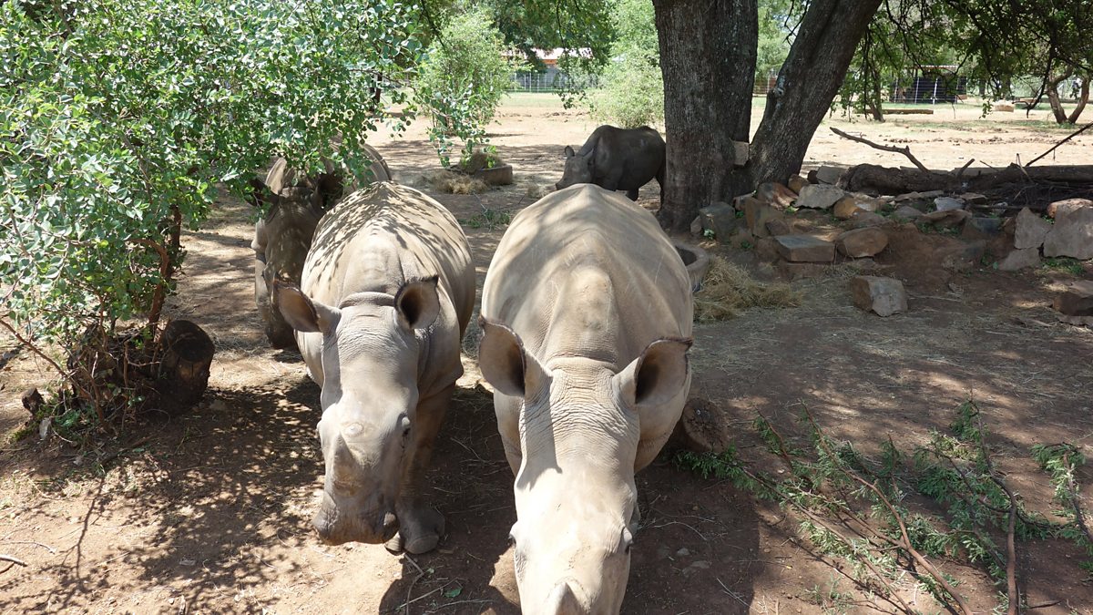 Adam Hart and producer Fi Roberts tracking wild white rhino in South Africa