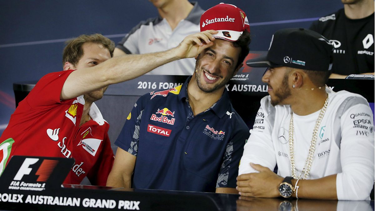 Ferrari's Sebastian Vettel takes victory in Melbourne ahead of Mercedes' Lewis Hamilton.