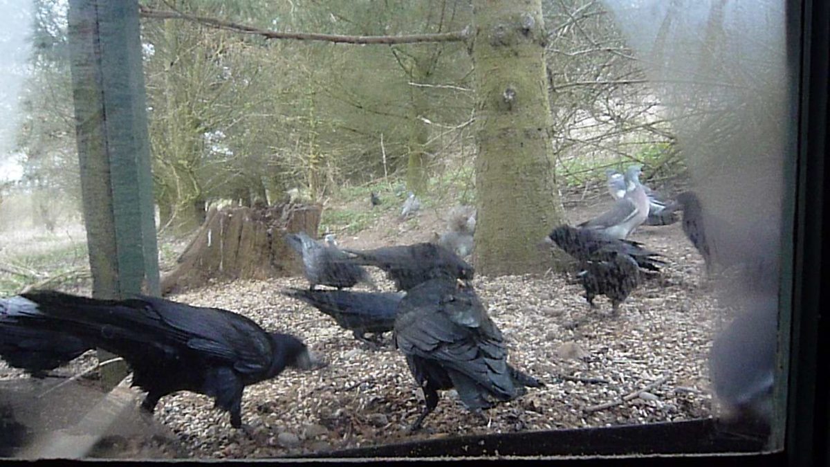 Some of the rooks at High Ash Farm at Caistor St Edmund in South Norfolk. They take the feed left for them by farmer Chris Skinner, to take back to the nesting females. This happens every day at 8am for a couple of weeks at around this time of year - and the seeds left by Chris for the rooks also attract pheasants, wood pigeons, stock doves, and the odd squirrel!