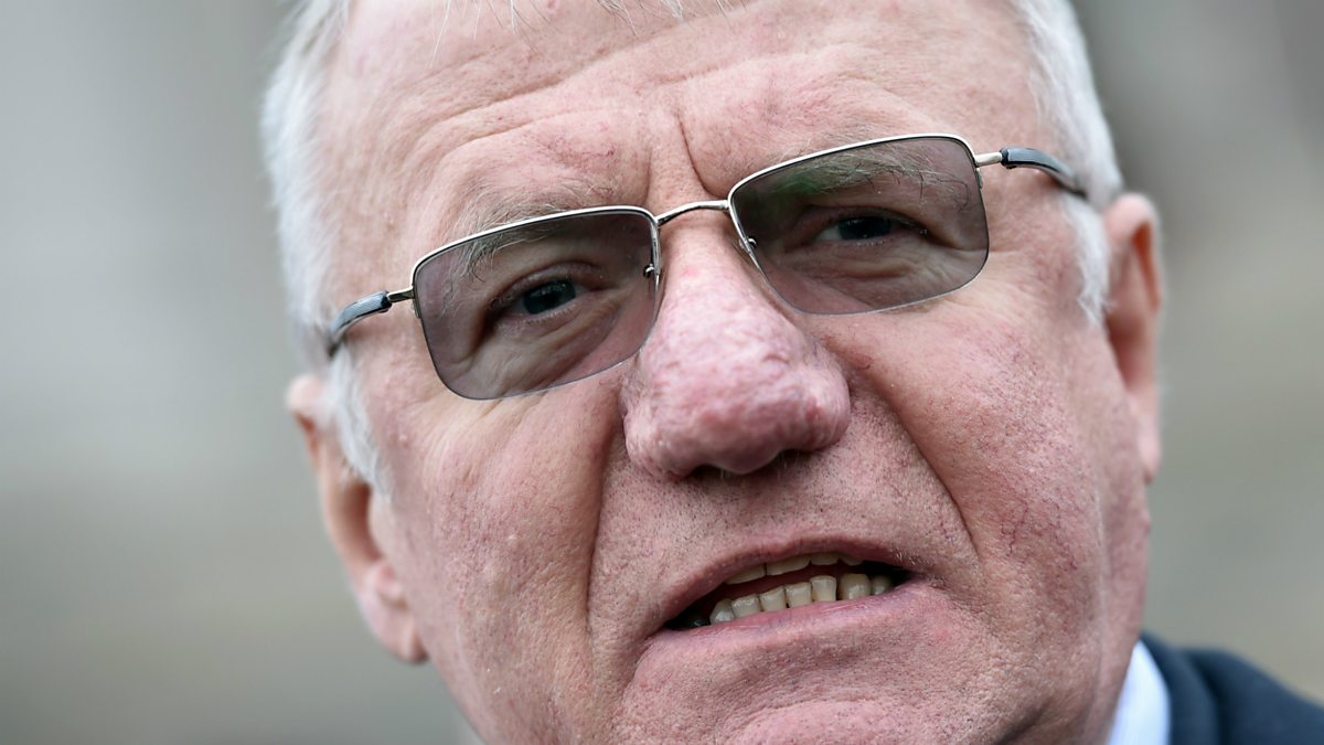 (Photo: Serbian nationalist politician Vojislav Seselj speaks to journalists in Belgrade on 23 January 2015. Mr Seselj was found not guilty of war crimes on Thursday at the International Criminal Tribunal for former Yugoslavia (ICTY). Credit: ANDREJ ISAKOVIC/AFP/Getty Images)