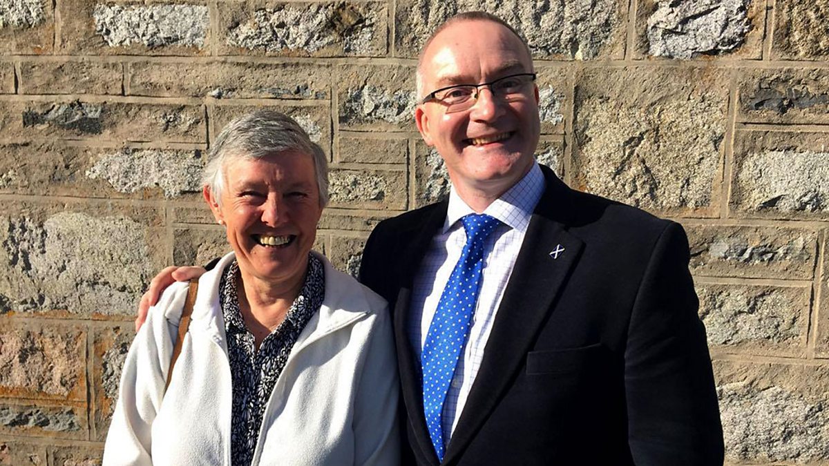 Iain Urchardan a' còmhradh ri neach-ionnsachaidh na seachdain, Moira Webster.
