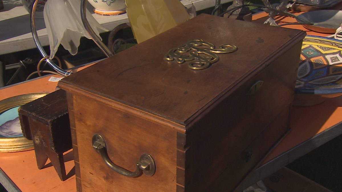 Jonathan Pratt shows the Red team an interesting wooden box.