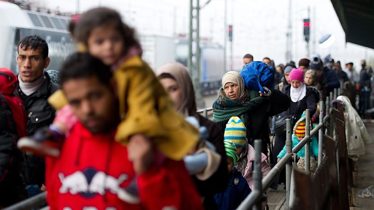 Image: Migrants walk on a platform of the railway station in Passau, southern Germany, to a special train to bring them to Duesseldof, western Germany, on November 3, 2015.