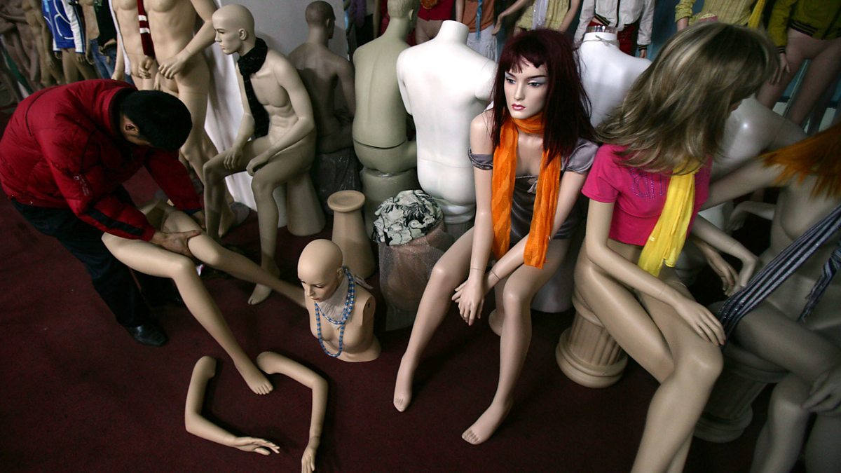Image: A vendor arranges stick-thin mannequins in a store in China (Credit: China Photos/Getty Images)