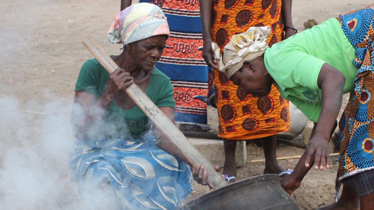 Image: Rebecca Atornyege, on the left, prepares the shea butter Credit: BBC
