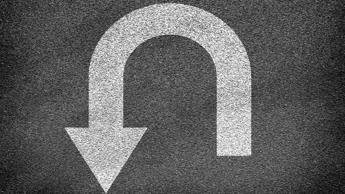 (Image: U-turn painted on tarmac. Credit: Shuterstock)