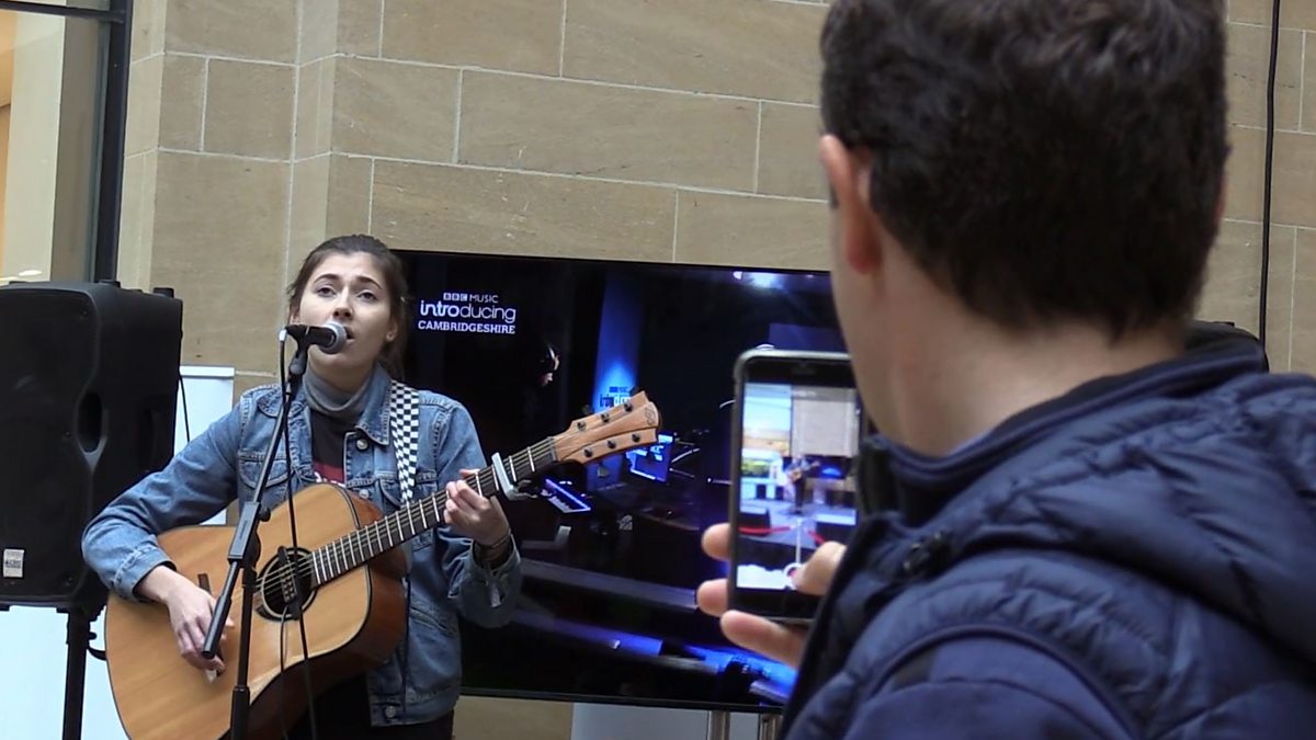 Sophie Winter performing at the Grand Arcade in Cambridge as part of Music Day 2016