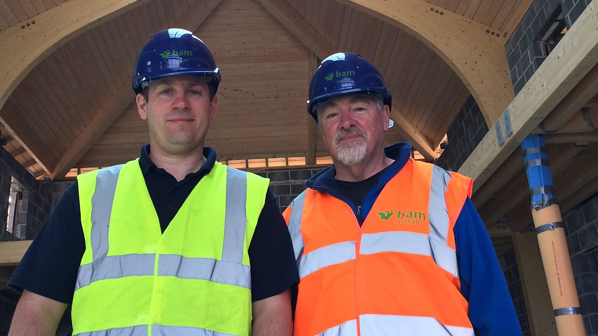 Lifeboat operations manager Neil Hardy MBE gives BBC Radio Solent's Neil Sackley a tour of the building site that will eventually be the new headquarters for Swanage RNLI.
