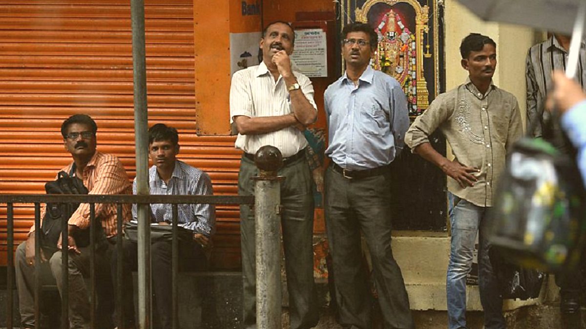 (Photo: Onlookers watch share prices on a digital broadcast on the facade of the Bombay Stock Exchange. (Indranil Mukherjee/AFP/Getty Images)