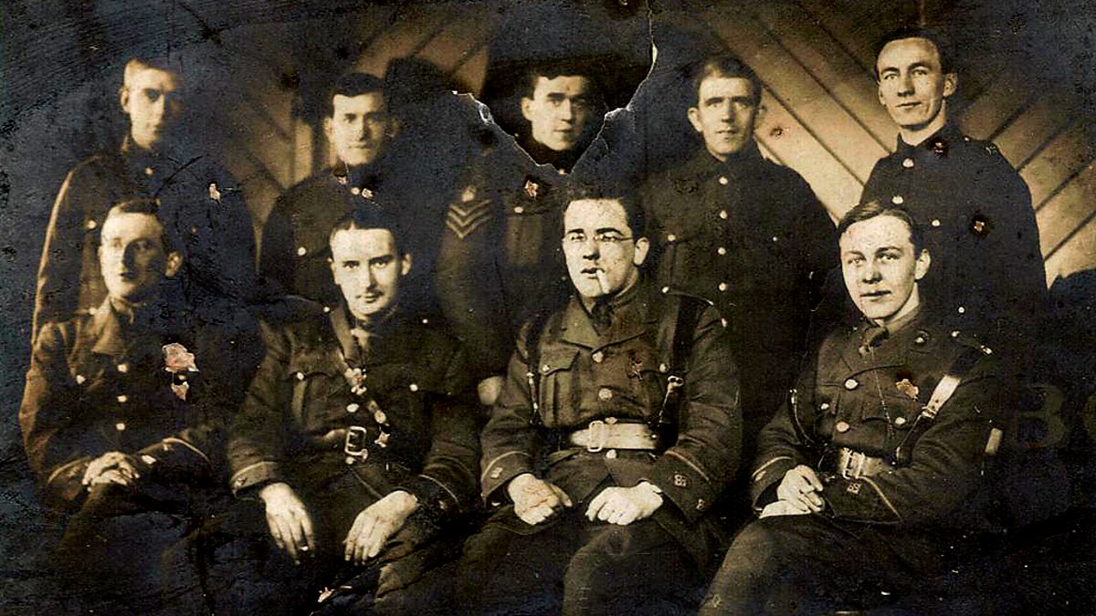 15:45 1st July, 1916 (Reevel's grandfather is second from right in the back row.)