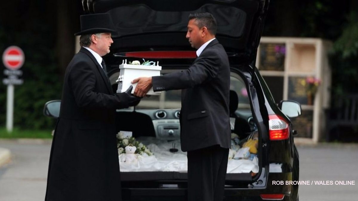 Dozens of people turned up for the funeral of Baby Sion, who was found in the River Taff a year ago. the family of Baby Sion - as he was named by nursing staff - has never been found. His funeral was paid for by public donations.