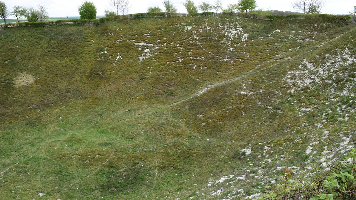 Before the attack in the Somme on 1st July 1916, the British laid huge mines under the German lines. One crater near the village of La Boisselle has been preserved.