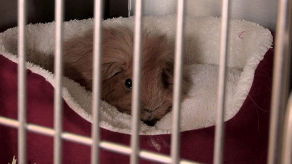 A guinea pig is getting an operation.