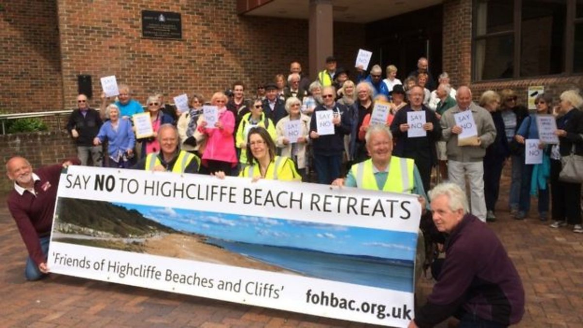 Latest on protest against 12 new beach huts in Christchurch as part of a TV show.