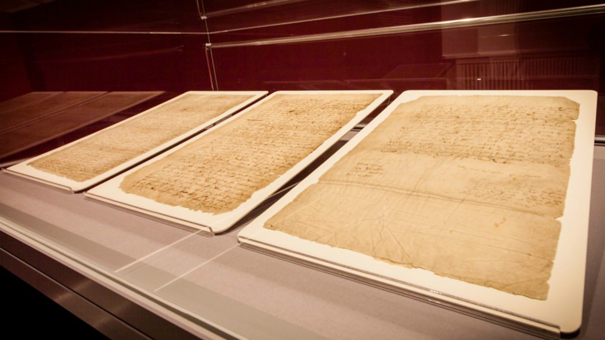 (Image: Shakespeare's will on display. Credit: National Archives.)