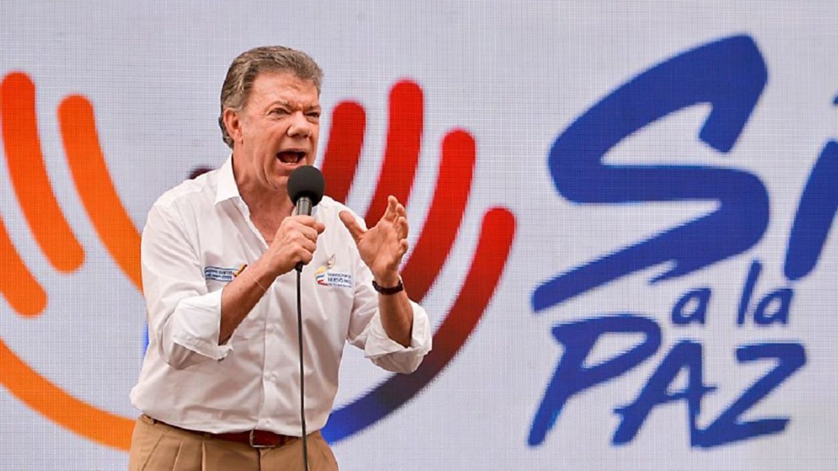 Photo: Colombian President Juan Manuel Santos speaks during the first day of a campaign to inform people about the peace talks between the government and the FARC guerrillas (LUIS ROBAYO/AFP/Getty Images)