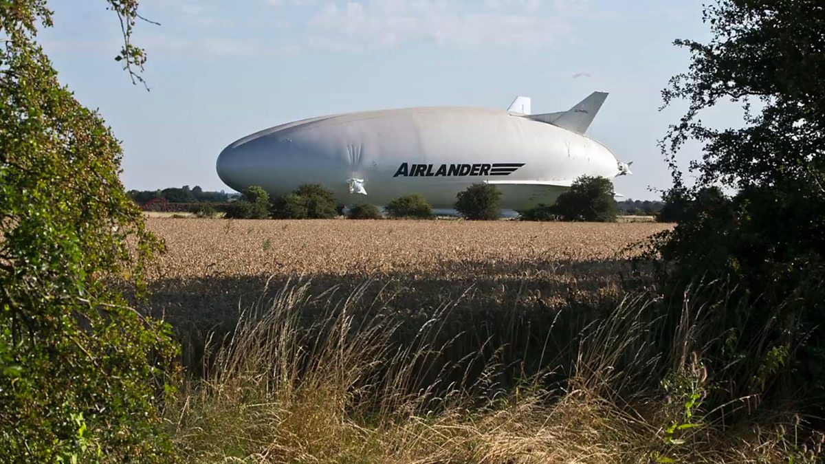 The 302ft-long (92m) aircraft passed with just a few feet to spare through the hangar doors and was then towed for 30 minutes to its mast site.