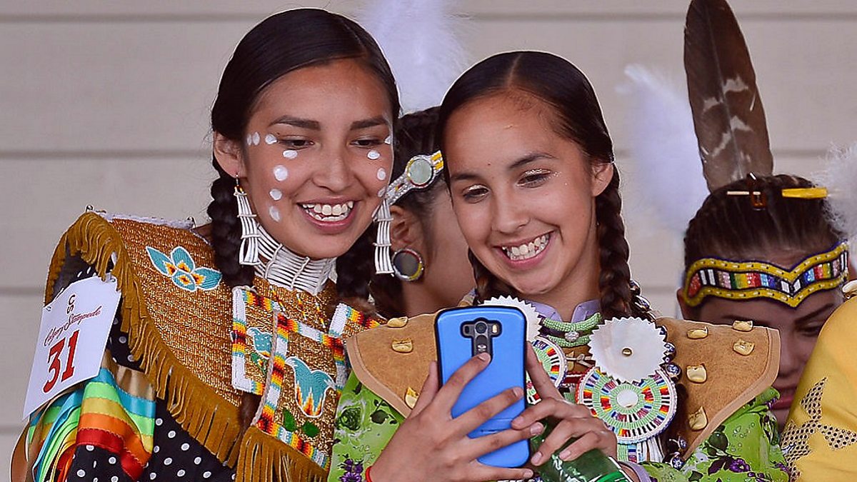 Photo: Two young members of the First Nations during the Calgary Stampede event of July 2016. (Artur Widak/NurPhoto via Getty Images)