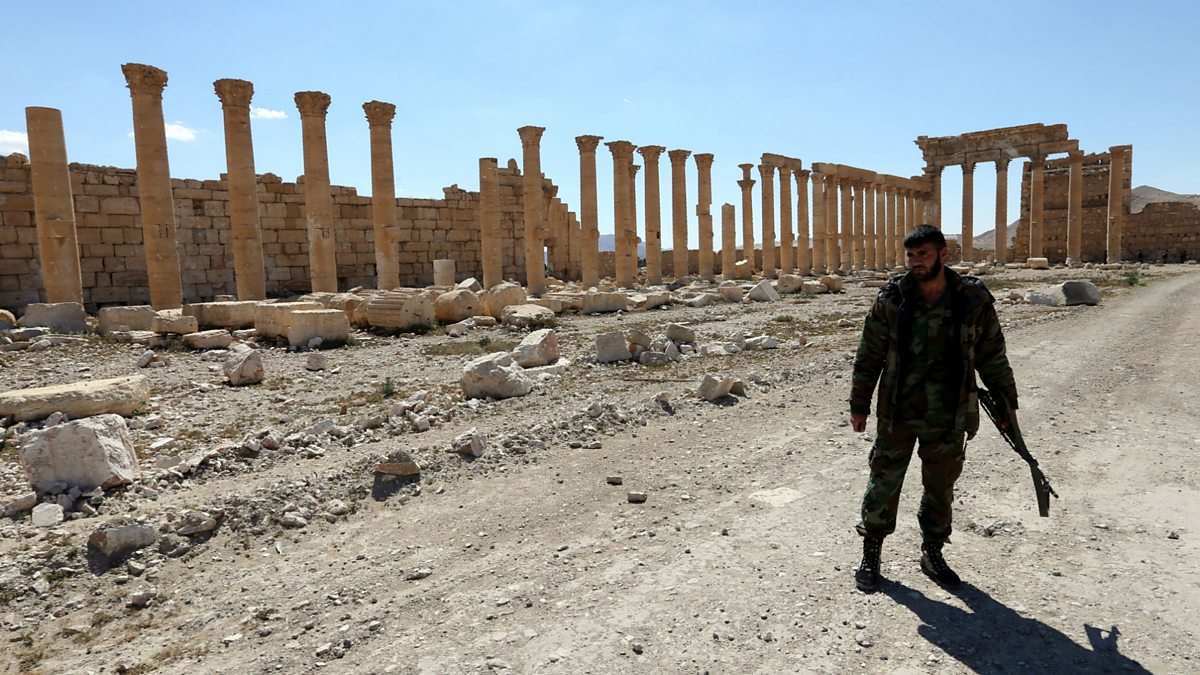 (Photo: A Syrian soldier inside Palmyra's Temple of Bel. Credit: Getty Images)