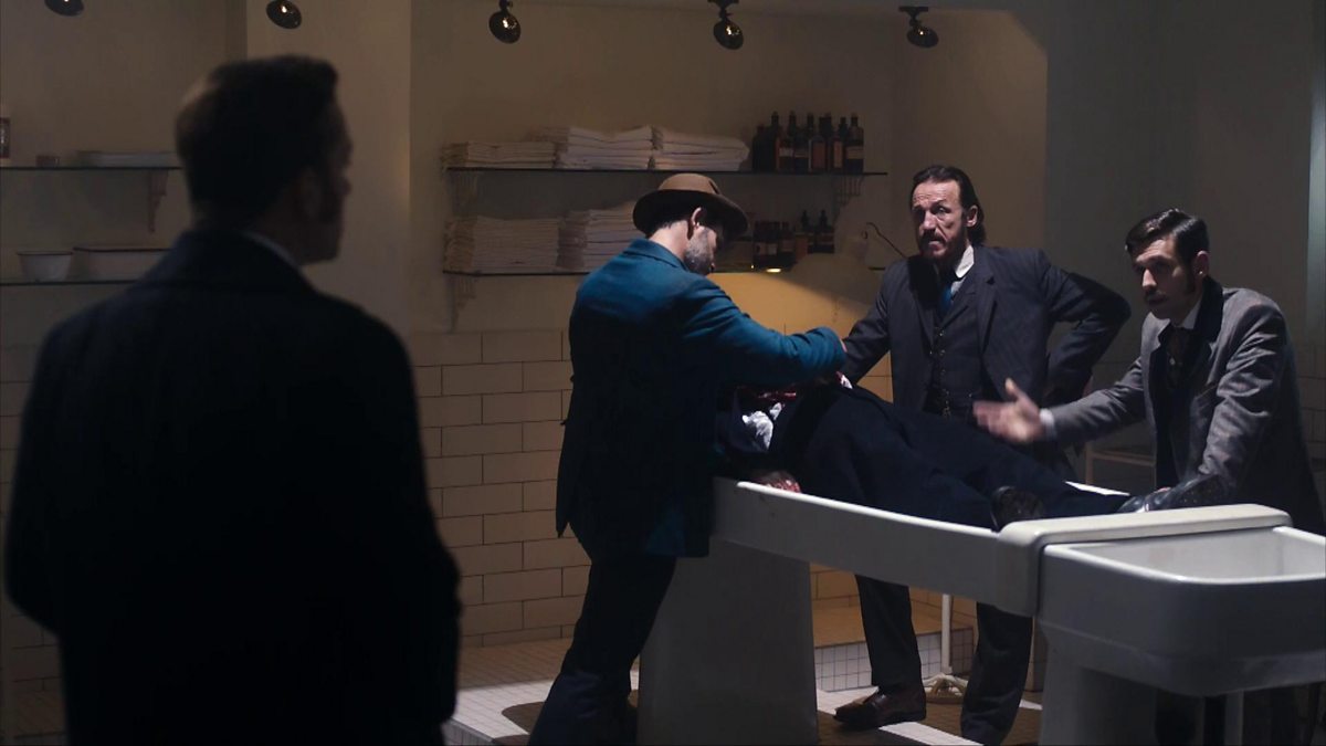 Reid is excluded from the conversation when Drake, Jackson and Thatcher investigate the mutilated body of Captain Solomon Shaw.