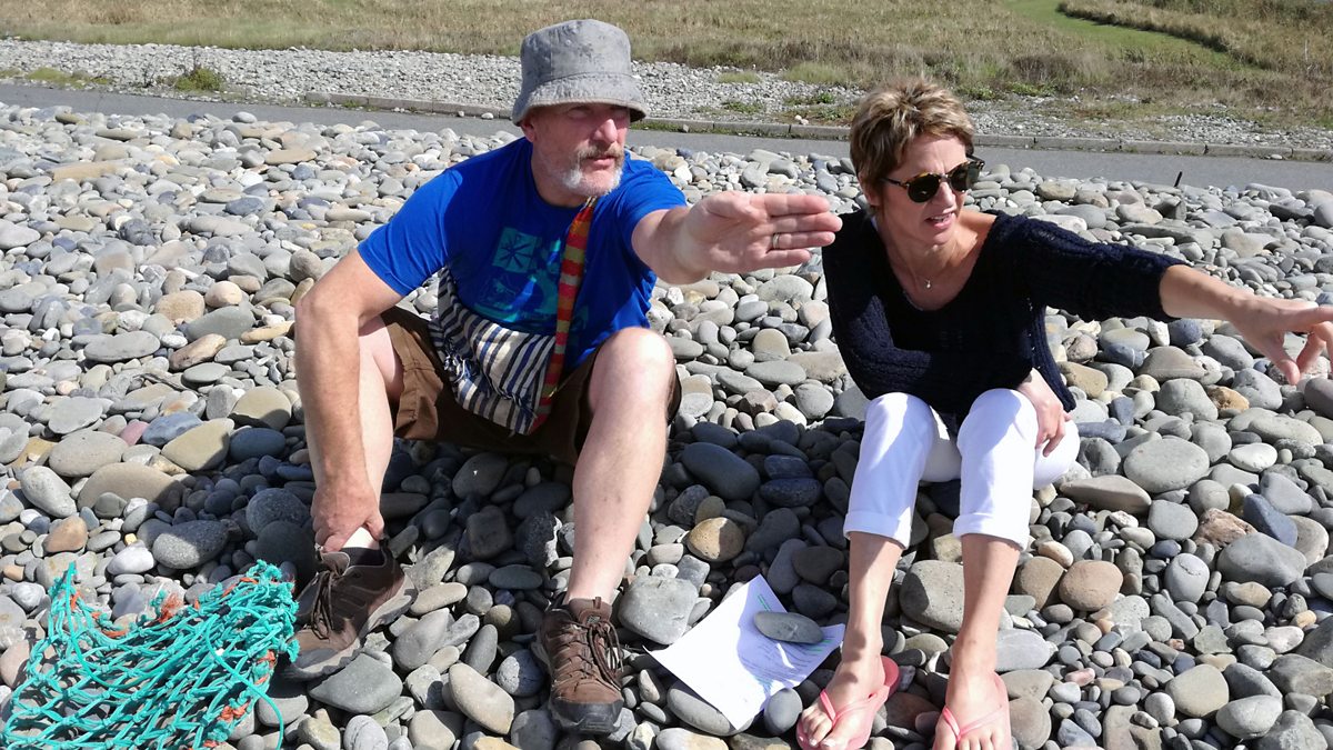Yr artist Richard Blacklaw Jones a Nia yn Sir Benfro, yn trafod sut mae Richard yn troi sbwriel o draethau yn waith celf.