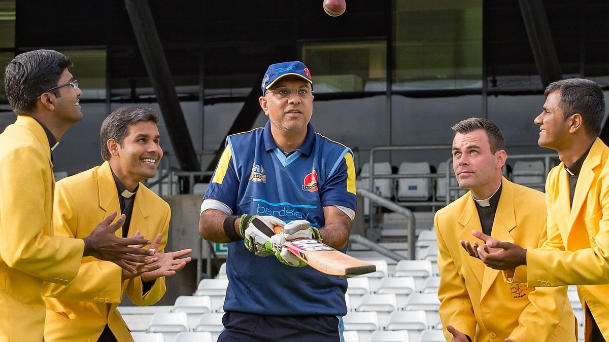 (Photo: Abdul Ravat of Mount CC surrounded by Catholic priests from St Peters CC. Credit: Guzelian)
