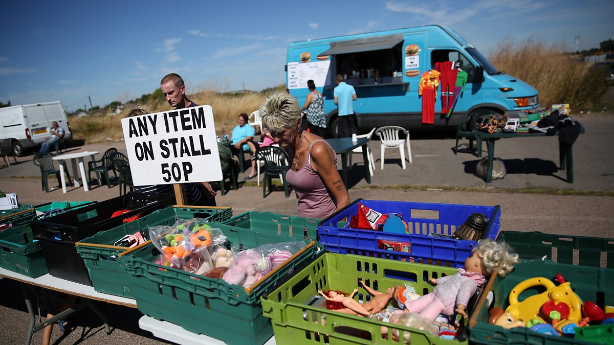 (image: Members of the public browse a car boot sale in Jaywick. Credit: Reuters)