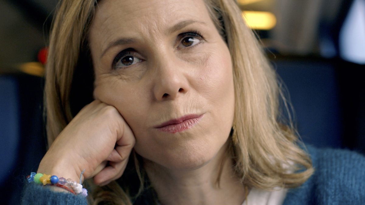 Sally Phillips acts out a little drama as an analogy to demonstrate some of the perceived negativity around Down's syndrome diagnoses.