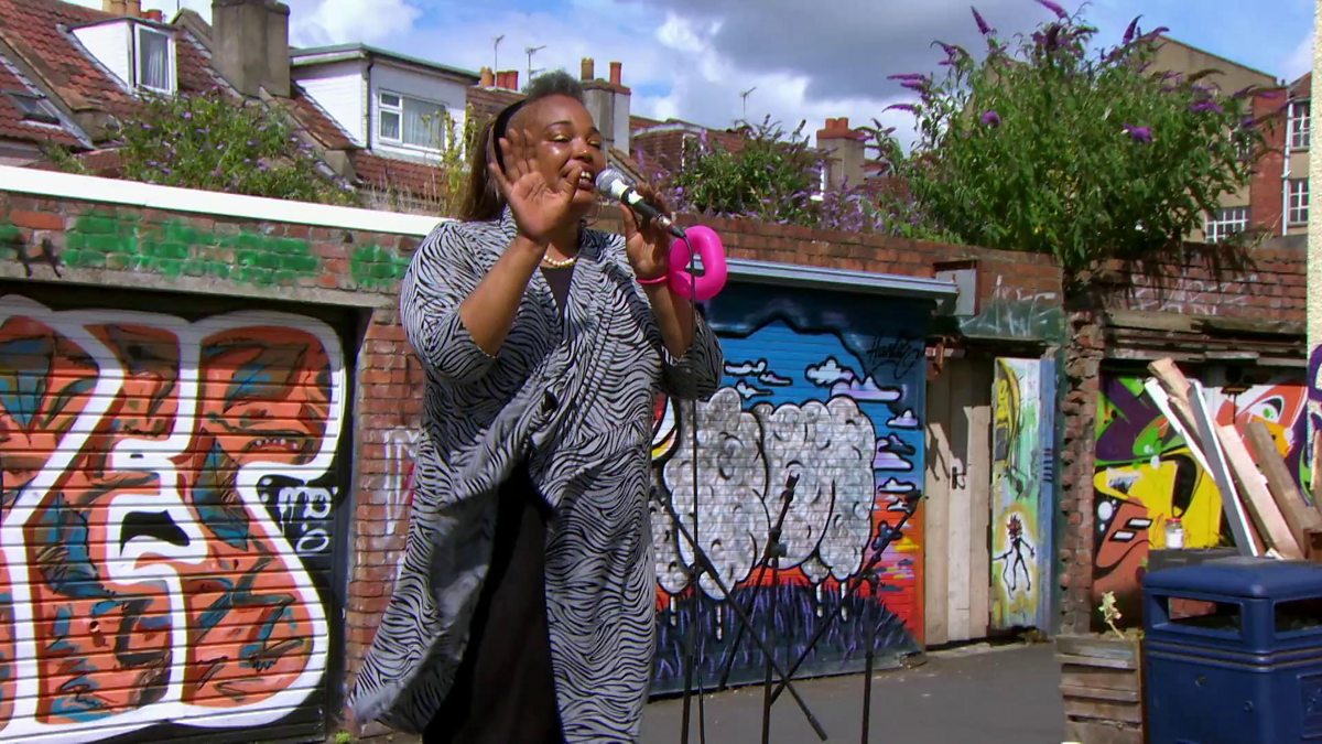 Youngsters from Easton in Bristol showcase their musical talents at a street party. But it's their mentor, Kizzy Morrell, who steals the show.