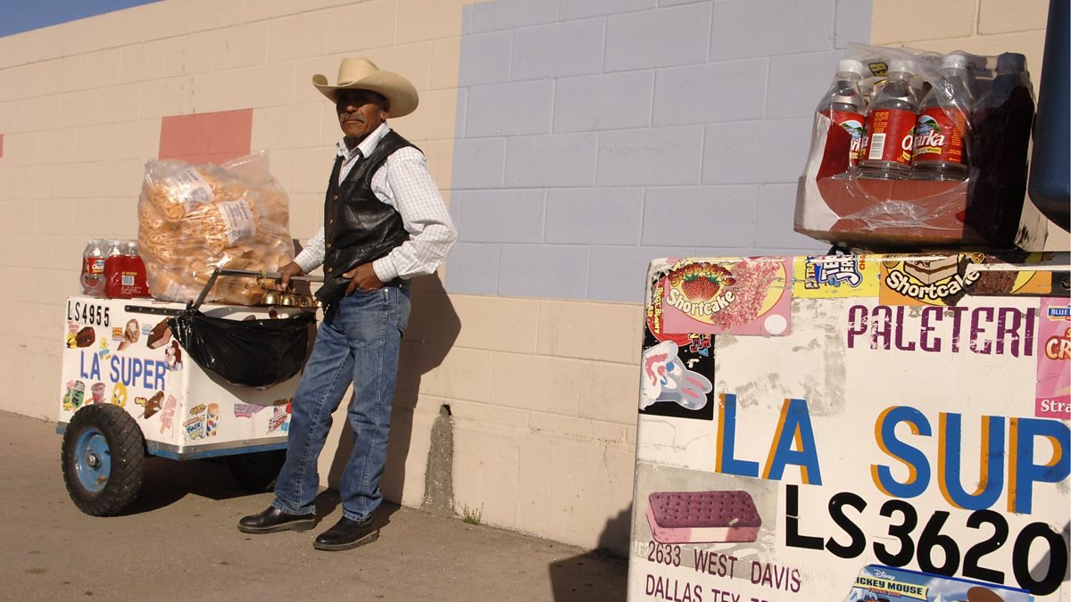 (Picture: Hispanic man stands next to his drink and ice cream carts in Texas; Credit: Jensen Walker/Getty Images)