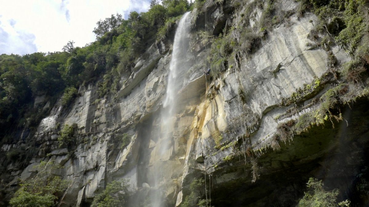 Abseiling a remote waterfall in Peru