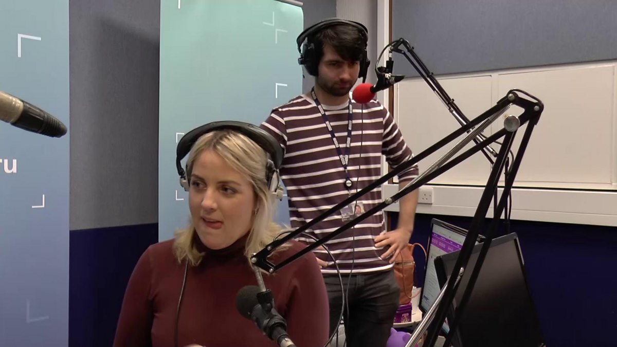 Lisa Angharad yn ceisio ateb cwestiynnau'r cwis