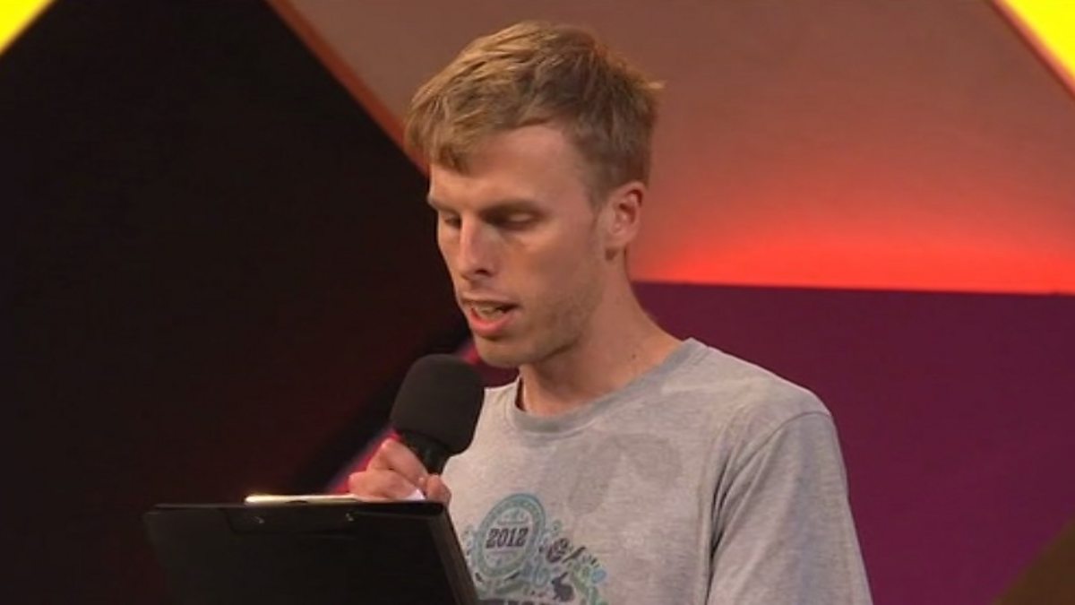 Former world slam poetry champion Harry Baker performs for Simon on National Poetry Day.