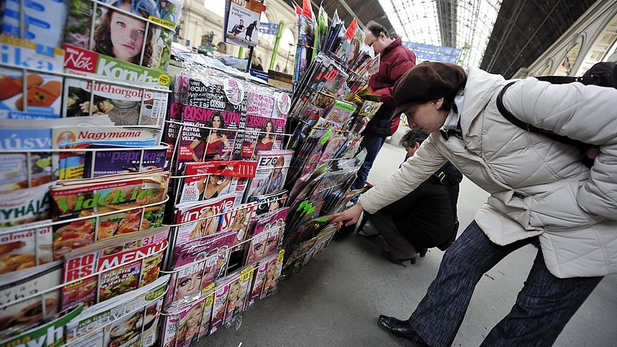 Image: Customer buying some magazines at a newsstand in Budapest.