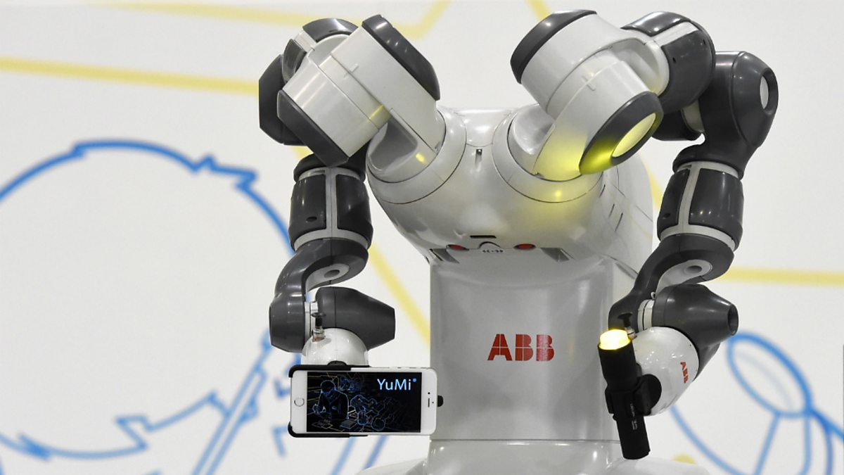 (Image: ABB cobot with two arms, Credit: Tobias Schwarz/ AFP/ Getty Images).