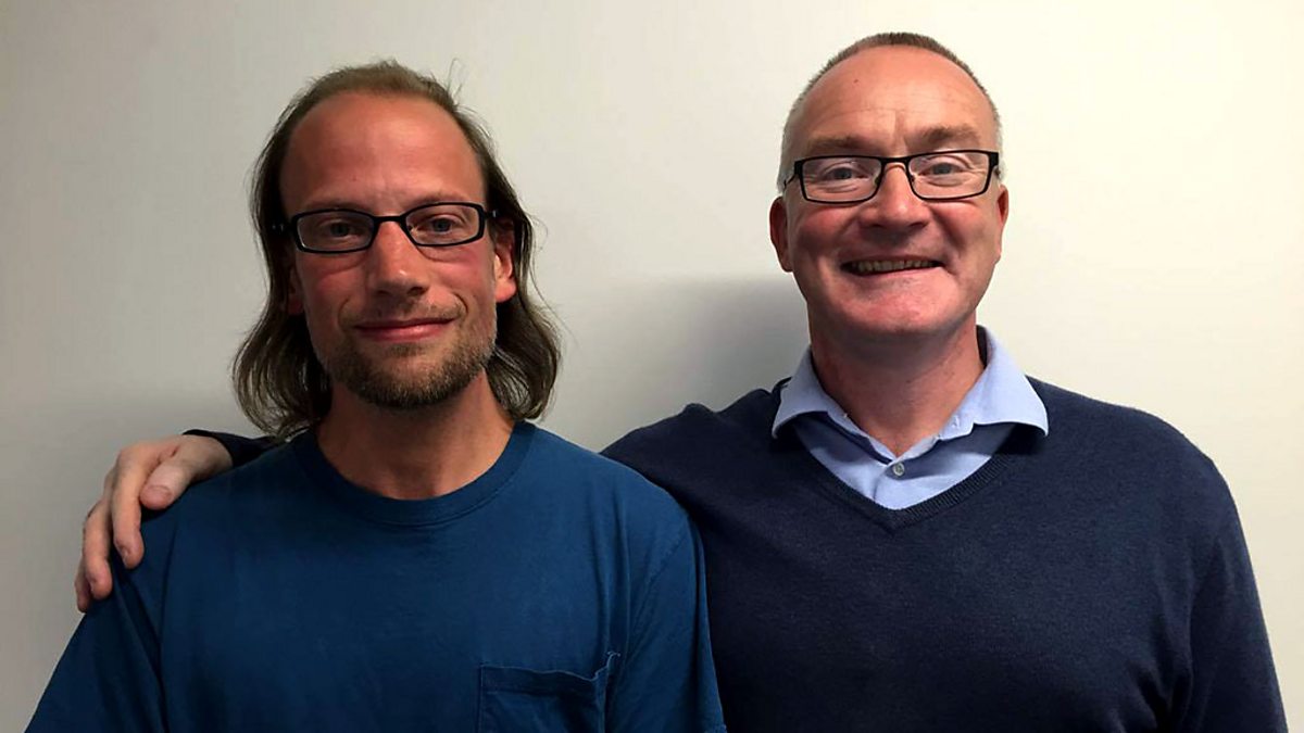 Iain Urchardan a' còmhradh ri neach-ionnsachaidh na seachdain Pàdraig Yancey